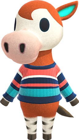 Dans New Horizons, son hobby est la nature et ses couleurs préférées sont le orange et l'aqua.