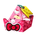 - cadeau Sanrio Characters qui offre un éventail Sanrio Characters parmi les 16 possibles : Hello Kitty, Cinnamoroll, Pompompurin, Little Twin Stars, My Melody, Keroppi, Pochacco, Tuxedosam, Pekkle, Badtz-Maru, Kuromi, Aggretsuko, Usahana, Gudetama, Hangyodon, Minna no Tabo.