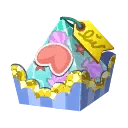 - cadeau bleu qui contient 5 objets aléatoires (leur quantité l'est également) qui peuvent être des citrons, raisins ou litchis selon le fruit du campeur qui offre le cadeau et ils peuvent être parfaits ou non, du miel, des filets de pêche rivière ou mer, des matériaux, un seau de pop-corn, un donut, du manju, une barre choco, une sucette, du quatre-quarts, une gaufre, un cookie, de la tarte, du cheesecake, de la crème anglaise et des gâteaux de la chance de Didi, Tony, Filibert, Anna, Julie, Cédric, Garance, Bouloche, Robert, Apollon, roses gothiques blanches ou pastel.