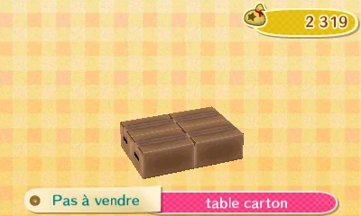 - Certains meubles obtenables via les villageois (série négligée ou série carton par exemple).