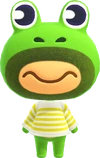 Dans le premier jeu sorti exclusivement au Japon, il existe 11 grenouilles : Milos , Figaro , Gambette , Emeraude , Bajoue , Raina , Prince , Rénata , Crabot , Crakos et Rénato . Dans le second opus japonais ainsi que dans Animal Crossing , toutes les grenouilles du premier sont de nouveau là avec deux nouvelles grenouilles : Jérémie et Gordon .