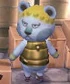 Dans Happy Home Designer, le thème de décoration de sa maison est "Thermes romains". Sa phrase de pensée avant de l'aborder est "Vivre dans d'anciens thermes romains, ce serait classe !".
