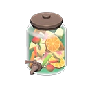 - Dans New Horizons, des meubles du Thème Fruits correspondant au fruit natif de l'île du joueur font partie de la décoration du premier villageois paresseux qui emménage.