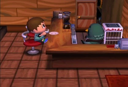 In New Leaf, he works at the coffee shop, called the Roost, once it has been built as a public works project.