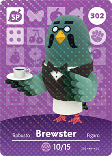 Brewster (マスター, Masutā?, Master) is a character who works in The Roost all hours of the day in the lower floor of the museum or in his own shop. He is a quiet, aloof pigeon with an interest in coffee. His name is a portmanteau of 'rooster' and 'brew'. In City Folk, he also has an interest in collecting gyroids.