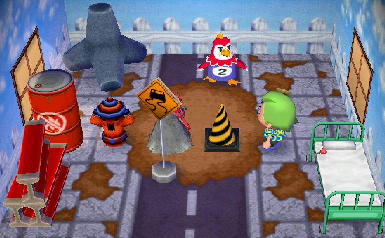 The Construction Theme consists of items found in construction sites. This theme has changed quite substantially between the original Animal Forest and the GameCube port. In Wild World, the oil drums were removed and formed their own Oil Drum Set.
