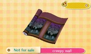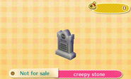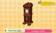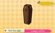 The Creepy set is a set of furniture items in the Animal Crossing series. It first appeared in City Folk as a series when it was distributed as DLC in 2012 in Japan and the United States. It reappears in New Leaf as an event-exclusive set obtainable through giving lollipops to Jack on Halloween.