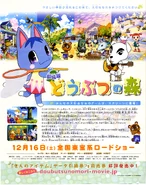 Dōbutsu no Mori was released theatrically in Japan on 16 December 2006 where it was distributed by Toho. It debuted in Japanese theaters as the third highest-grossing film of its opening weekend behind Letters from Iwo Jima and Eragon, earning approximately ¥246 million ($2,085,729).[6] By the end of 2006, the movie had a total revenue of ¥1.526 billion ($12,915,432), becoming the 30th highest-grossing film that year in the region.[7] The film had lifetime earnings of approximately ¥1.7 billion ($16,216,731) by the end of its theatrical run in 2007, making it the 17th highest-grossing film of that year when combining it with its December 2006 box office total.[8]