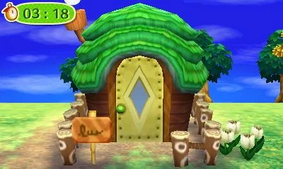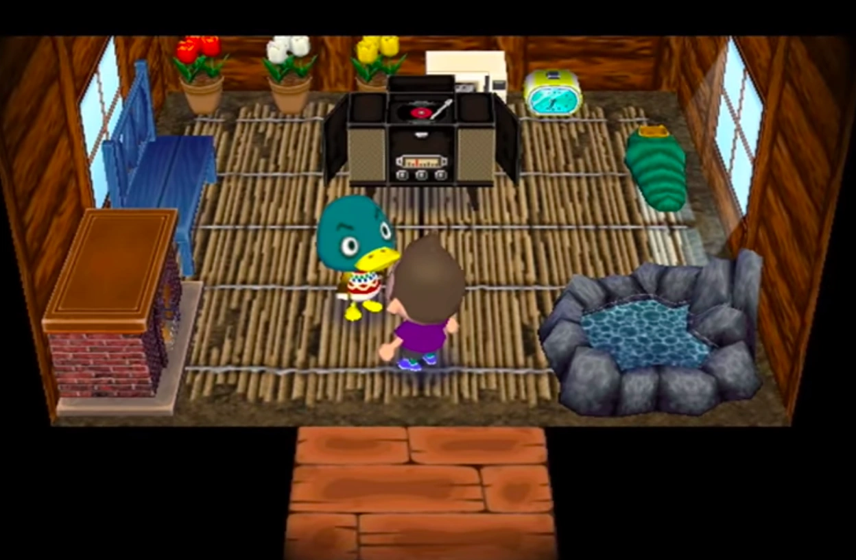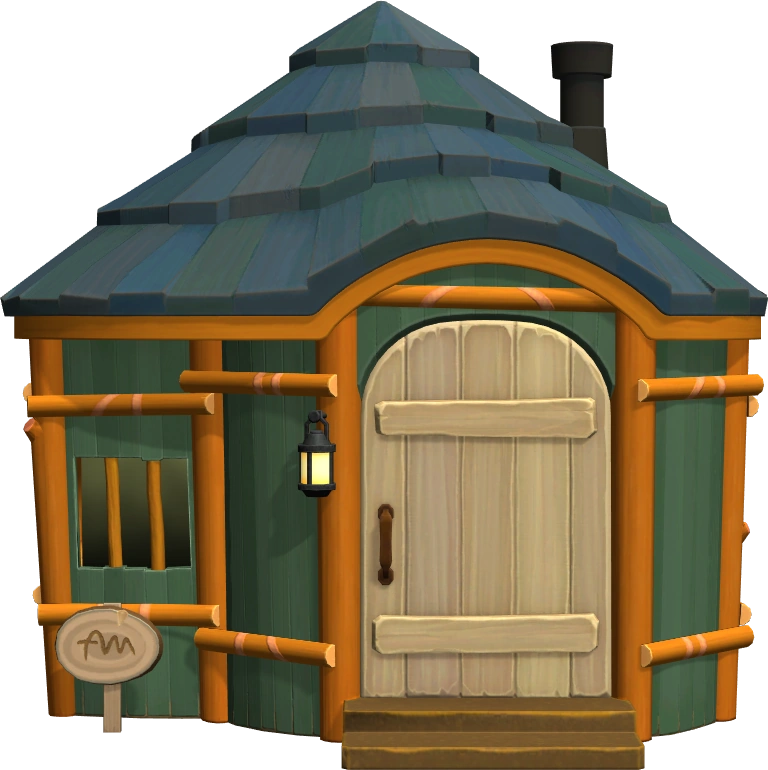 Drake's house is camp-themed, using the shanty mat and cabin wallpaper. He has a retro stereo in his house which plays K.K. Blues. He also has a sleeping bag and a microwave in the games before New Leaf.