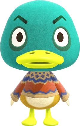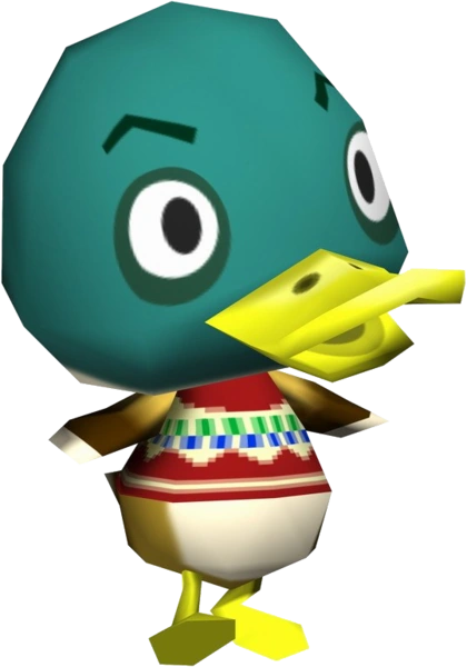 Drake (フォアグラ, Foagura?, Foie Gras) is a lazy duck villager from the Animal Crossing series. The name "Drake" comes from the word given to male ducks or could be a reference to the very controversial rapper, Drake. Female ducks are called "hens". His Japanese name comes from the food foie gras, made with duck liver. His initial phrase, "quacko", is play on the word "quack", the sound ducks make. Bill, another male duck, says the same catchphrase. He shares his Wild World picture quote with Elmer, another villager.