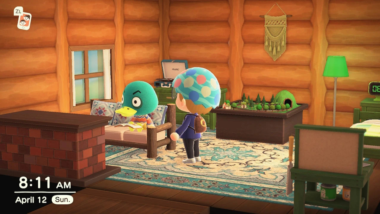 As a lazy villager, Drake will be friendly and easy to get along with due to his laid back lifestyle. Like all lazy villagers, he has a love of food and relaxing. He will enjoy partaking in the usual hobbies, usually for relaxing reasons or for food, like when fishing. Drake will get along well with other villagers, but may offend or confuse jock villagers, who have a lifestyle of exercise and fitness, which conflicts with the lazy lifestyle of relaxing and food. He will get along with other lazy villagers with whom he will talk about food, comics, or superheroes. He will also get along well with normal, peppy, smug, and sisterly villagers, and occasionally cranky villagers, but may from time to time annoy snooty villagers, who disagree with the lazy lifestyle.