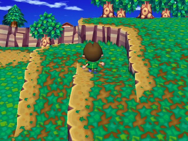 Grass deterioration, also known as animal tracks (from the Japanese term けもの道 kemono michi), desire lines or grass wear, is a feature introduced in City Folk. The game is able to keep track of the player's movements throughout the town and will wear down the grass accordingly. Whereas the feature appeared in the subsequent New Leaf, it is absent in New Horizons.