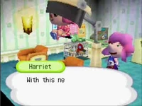 Harriet talking to a player after getting a Mii Mask in City Folk.