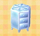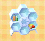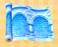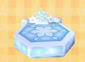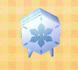 The ice series is a new collection of furniture introduced in New Leaf. It is awarded to the player during the winter months by a Snowmam for catching snowflakes. The series consists of furniture sculpted out of ice showing hexagonal elements with resemblance to snowflakes and crystalline structures. The matching wallpaper is made of bricks of ice, much like an igloo. The matching carpet completes the ice theme by having a large snow flake design in the center, with blocks of ice in a circular pattern. In New Horizons, they are DIYs obtained by making perfect Snowmen.
