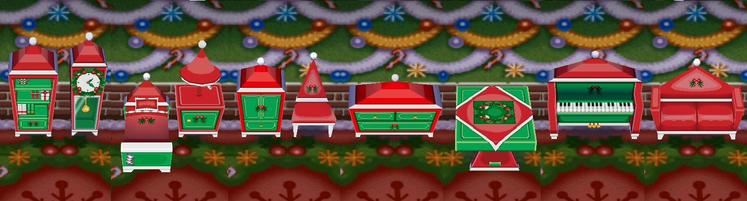 The Jingle series (クリスマスシリーズ Kurisumasu shirīzu?, Christmas) is a series of furniture in the Animal Crossing series. This furniture can only be obtained by talking to Jingle on Christmas Eve. This series was omitted from Wild World along with other seasonal furniture series, like the spooky series. All items sell for 12,240 Bells which reflects the date of Christmas Eve in the American format - 12/24. Each Jingle item from the Jingle series each worth 1,224 HRA Points. The Jingle TV, released in December of 2012, was the last downloadable item distributed in City Folk.