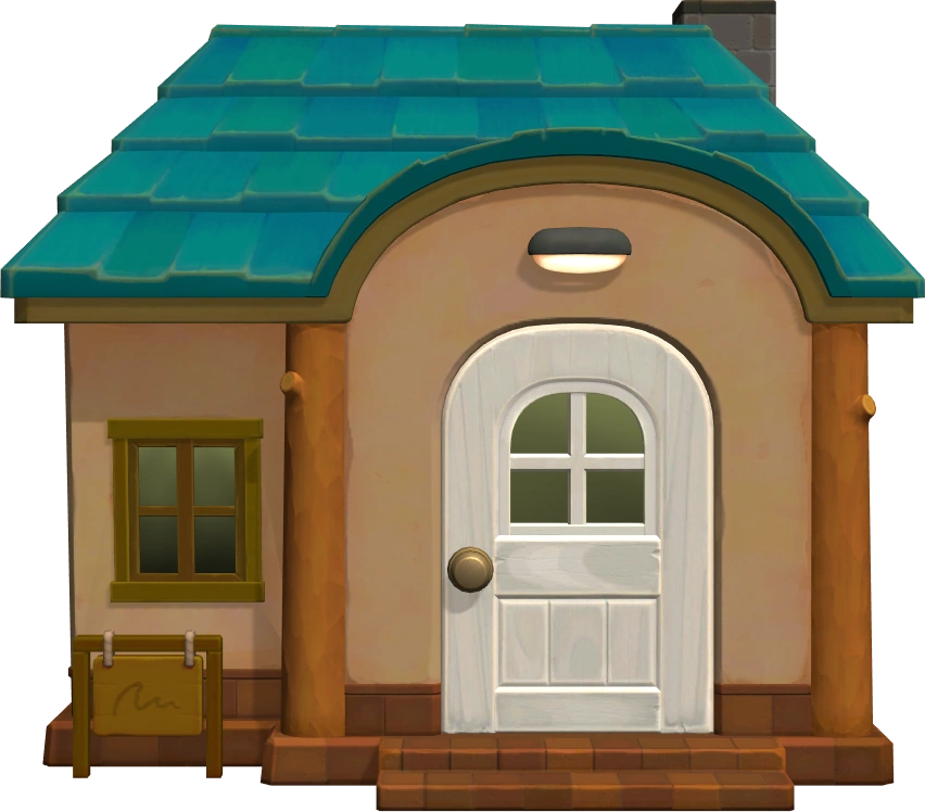 In New Leaf the house has been redesigned with a casual kitchen theme, utilizing the Alpine Series, the Modern Wood Series (including the wall) with an Alpine Table and Modern Wood Bench. There are other kitchen items including the Kitchen Floor with a sink, Science Table, and fridge. The music in Lolly's house is K.K. Stroll playing on a CD Player.