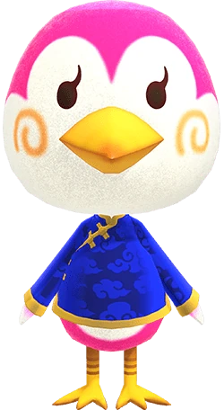 Midge (うずまき,Uzumaki?) is a normalbirdvillager who has appeared in every game except Wild World. Her name might be a reference to the insect midge which many birds feed on. Her Japanese name means Spiral, referencing the spiral design on her cheeks. Her catchphrase, "tweedledee," is a reference to the chirping of some smaller species of birds. Her quote is a reference to the migration of birds during the winter. She has the education hobby.