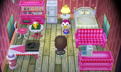 In most games, Midge's house is gently themed and consists of furniture from the Lovely Series and the Regal Series such as the Lovely Dresser and Regal Bed. She plays K.K. Lullaby in the installments that she has appeared in. The present flooring throughout the games is the Birch Flooring and the wallpaper throughout most of the games is the Rose Wall.