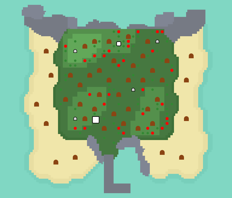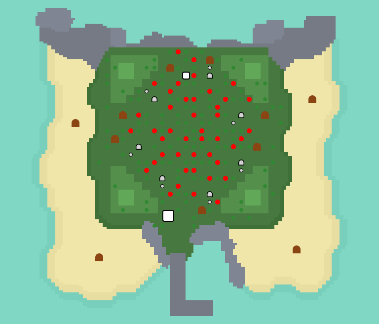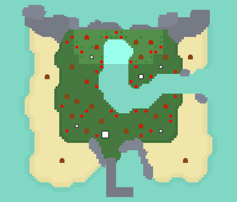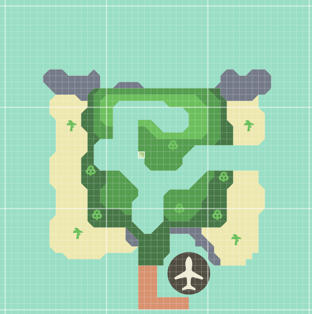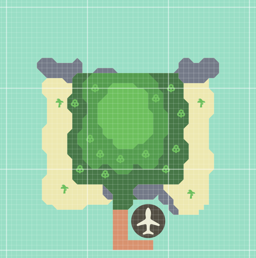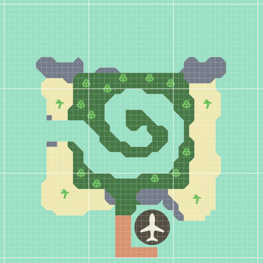 | A one-layer island where bamboo is found. While there are palm trees on the beaches, there are no fruit, hardwood, or cedar trees. This island has the highest encounter rate and is statistically the most common layout that will be encountered. | |||