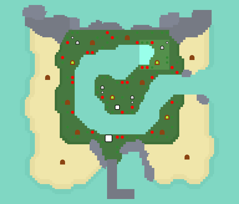 | It has almost the exact same layout as short river island #1, but with the addition of a pond in the southwest. It is part of the subset of four "starter" islands that players will randomly arrive at for their very first mystery tour. | |||