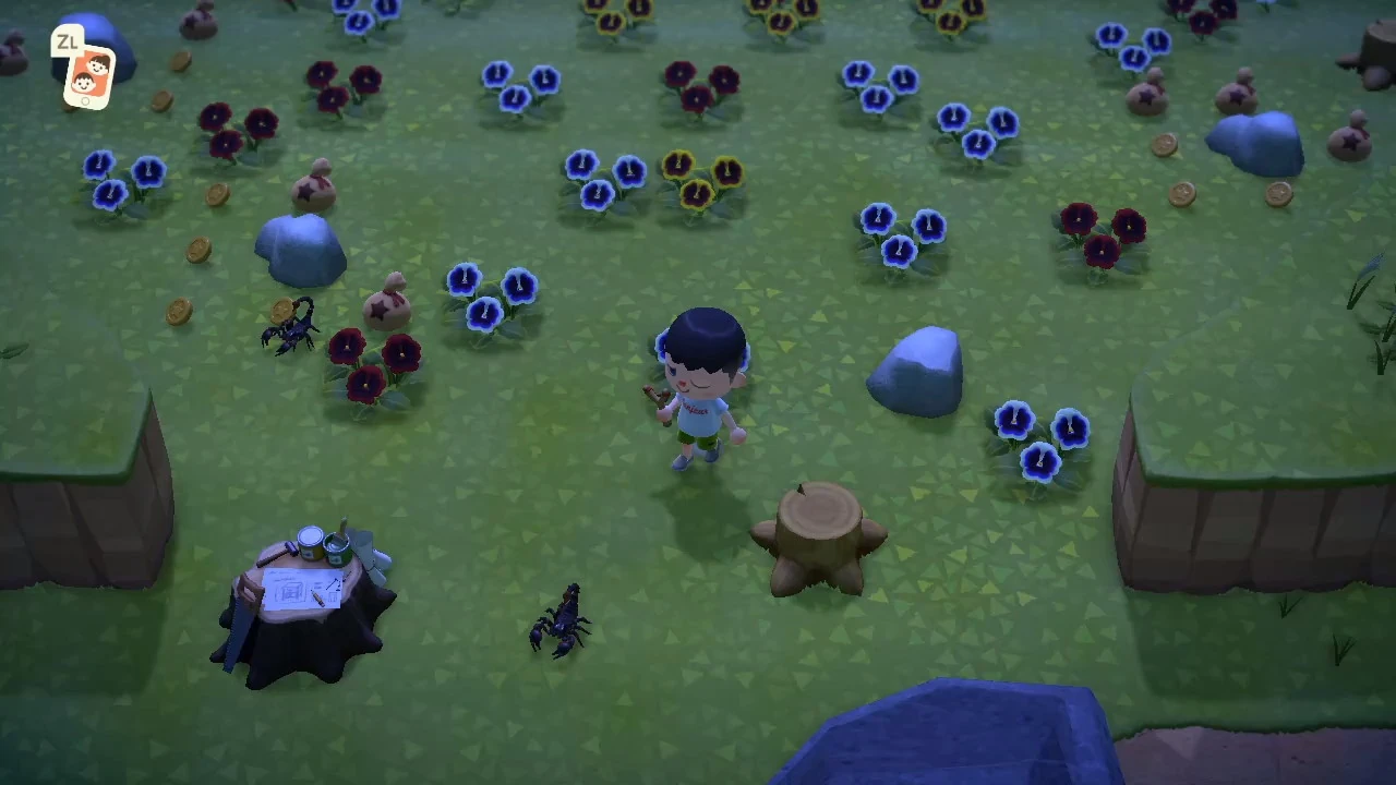 Some mystery islands spawn large numbers of rare critters: there exists an island where only tarantulas and scorpions spawn, providing the player with a way to grind large amounts of Bells relatively quickly, similar to palm tree bugs on the island in New Leaf. Passing out due to a tarantula or scorpion bite on a mystery island will not return the player to their home island; they will wake up by the seaplane at the beginning of the island.