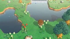 | An island where the only fish that spawn are size 4 or larger, making it a great place to catch rare size 6 fish. The river originates on a small plateau in the northeastern corner of the island, flows down waterfalls on the southern and western edges of the plateau, and rejoins to flow through a single mouth at the western edge, forming a small river island in the center. The island has four rocks, four palm trees, four trees of the player's native fruit and six other deciduous trees. | |||