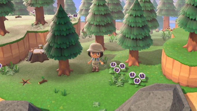 All mystery tour islands are guaranteed to feature a dock where the player arrives and can return to their own island, a non-removable simple DIY workbench, and beaches with at least four palm trees. A non-removable campfire will be present if a villager is camping on the island. If the island has hardwood and/or pine trees a random tree will drop a wasp nest while another will drop a random furniture item upon being shaken. There is a 50% chance of a single fossil spawning, as well as a 50% chance of a message in a bottle spawning on the shore. Wilbur is also always present on the dock and will sell flimsy tools in exchange for Nook Miles. The makeup of the island's interior is randomly chosen from a pool of layouts.