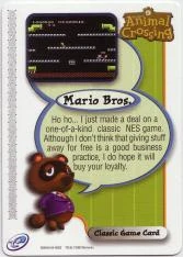 NES Games are in-game games that appear in Animal Forest, Animal Forest+, Animal Crossing, and Animal Forest e+. They are games that appeared on the Nintendo Entertainment System and can be played just as if they were the original. Some can be won at Tom Nook's lottery, while others are obtained as promotional items from a special memory card found in certain Animal Crossing games. Nintendo e-Cards also have a few NES games available for Animal Crossing.