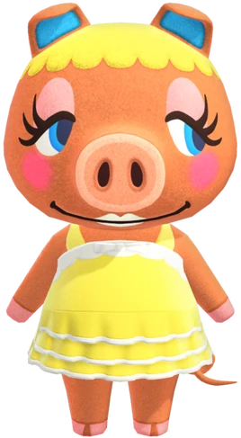 Pancetti (ブリトニー, Buritonī?, Britney) is a snooty pig villager who first appeared in New Leaf. Her name comes from pancetta, a type of bacon. Her catchphrase, "sooey", is also a phrase farmers use to tell their pigs it's feeding time, reflecting her species. She shares her birthday with Gracie. She appears on the album cover for The K. Funk. She has the music hobby.