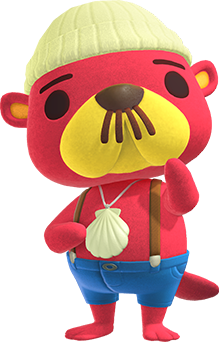 Pascal (ラコスケ, Rakosuke?) is a special character that debuts in Wild World and later plays a role in City Folk, New Leaf, and New Horizons. He is a red sea otter, with a yellow muzzle, a brown nose and whiskers, as well as wide black eyes. He wears a beige sailor's watch cap, dungaree overalls, and has a scallop-shaped pendant hanging around his neck.