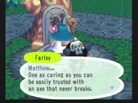 In Animal Crossing, if the player keeps a perfect town status achieved for 15 days, Farley will appear and award the player with a gold axe when they check the Wishing Well.