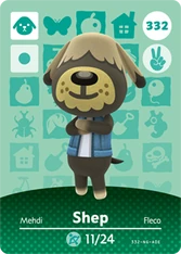 Shep (ボブ, Bobu?, Bob) is a smug dog villager who first appeared in New Leaf. His name comes from the Sheepdog breed of dog, or the fact that Shepherds sometimes use said dogs to round sheep. His catchphrase in New Leaf, "baaa man", possibly references the name of the breed of dog he is based on, a sheepdog. The beginning of the word is another animal's name, a sheep, which makes the sound "baaa".