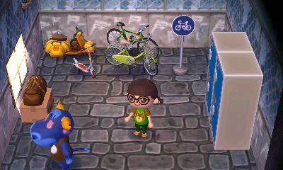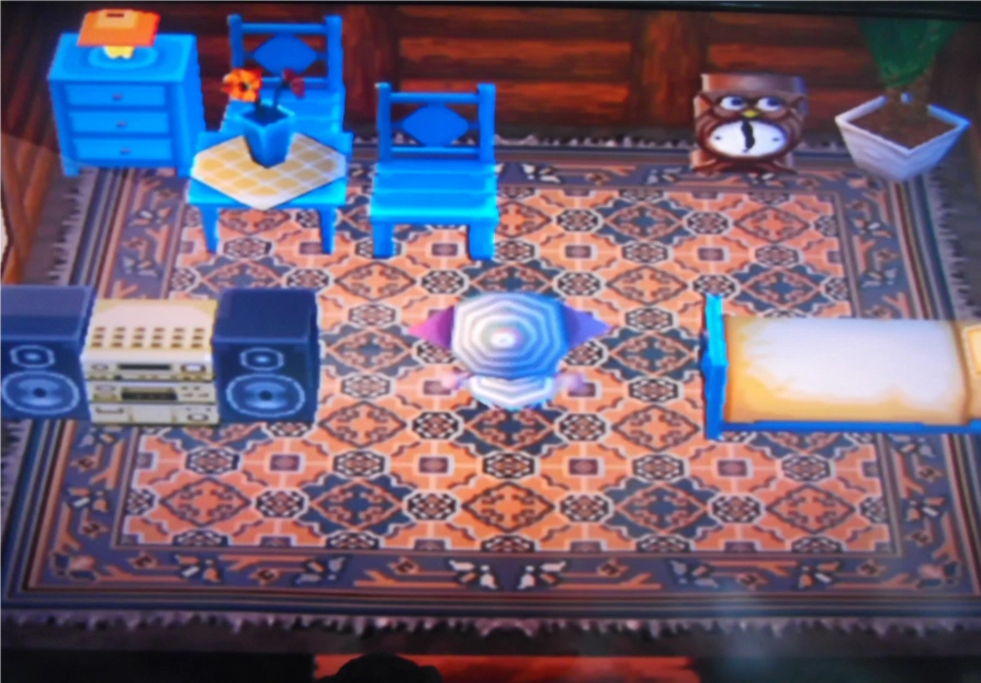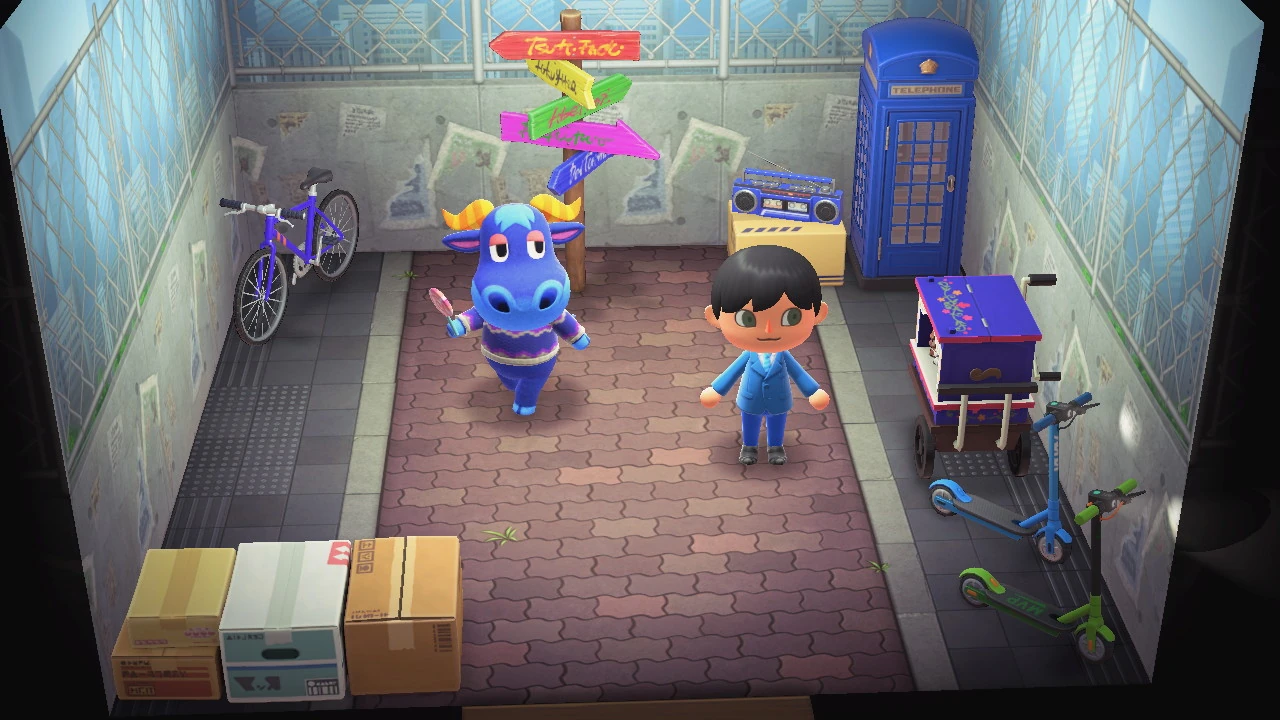 In Animal Crossing, Stu's house has mostly blue and cabin themed furniture, and a stereo playing K.K. Lullaby.