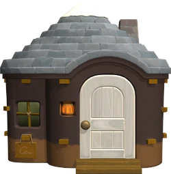 In New Leaf, Zell has some of his furniture form the Gorgeous Series, along with a ebony piano, a billiard table, pothos, 2 stools, a vintage telephone, Dracaena, a Phonograph, and a sconce. The wallpaper he has is the Cityscape wall and he also has the Modern tile. All of this gives his house a classier look.